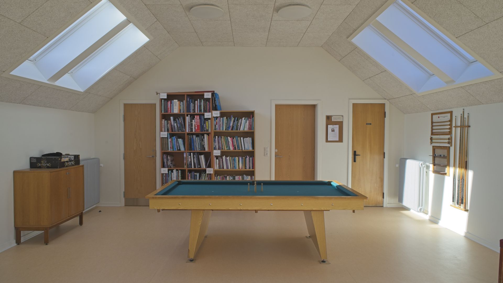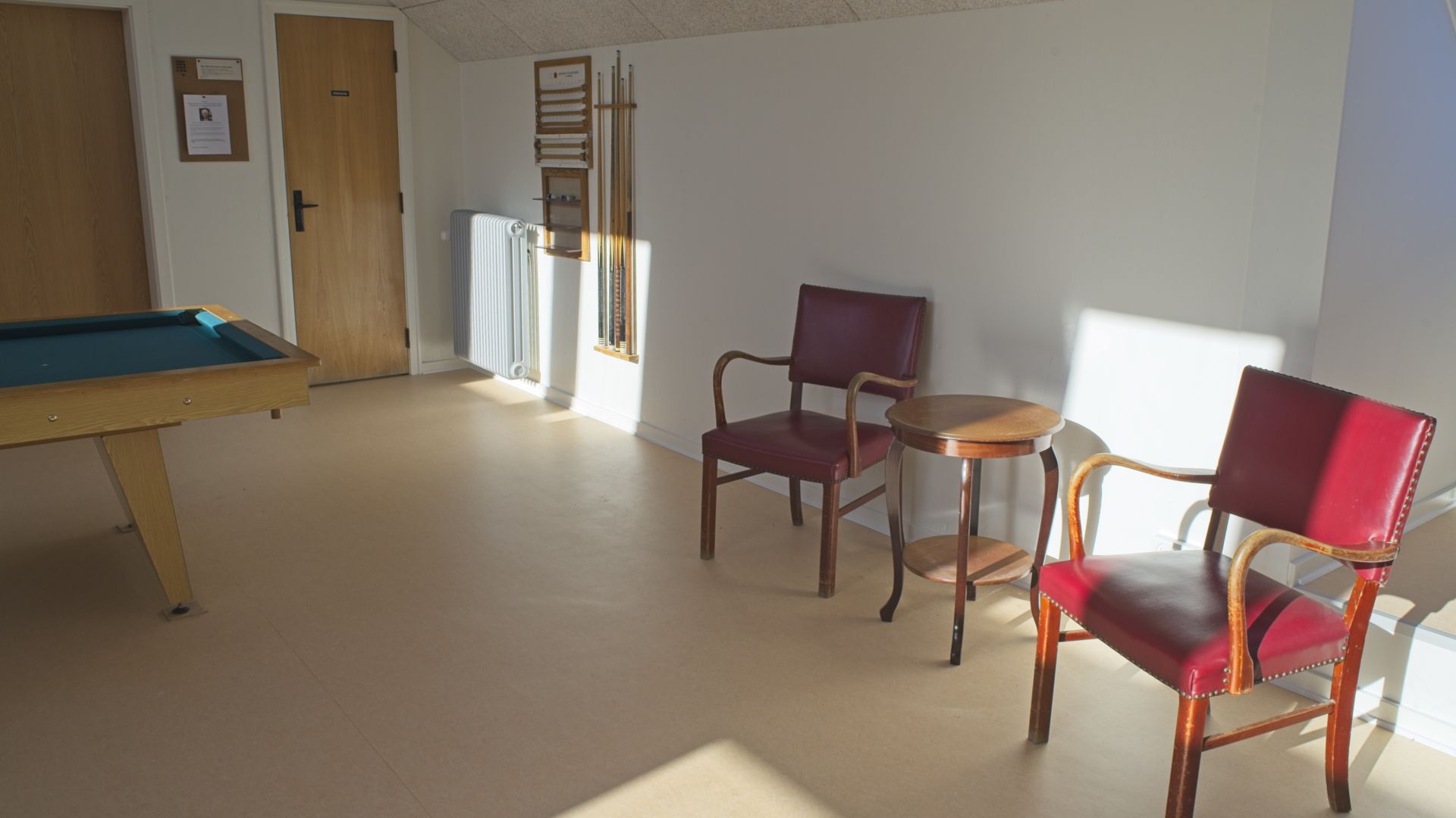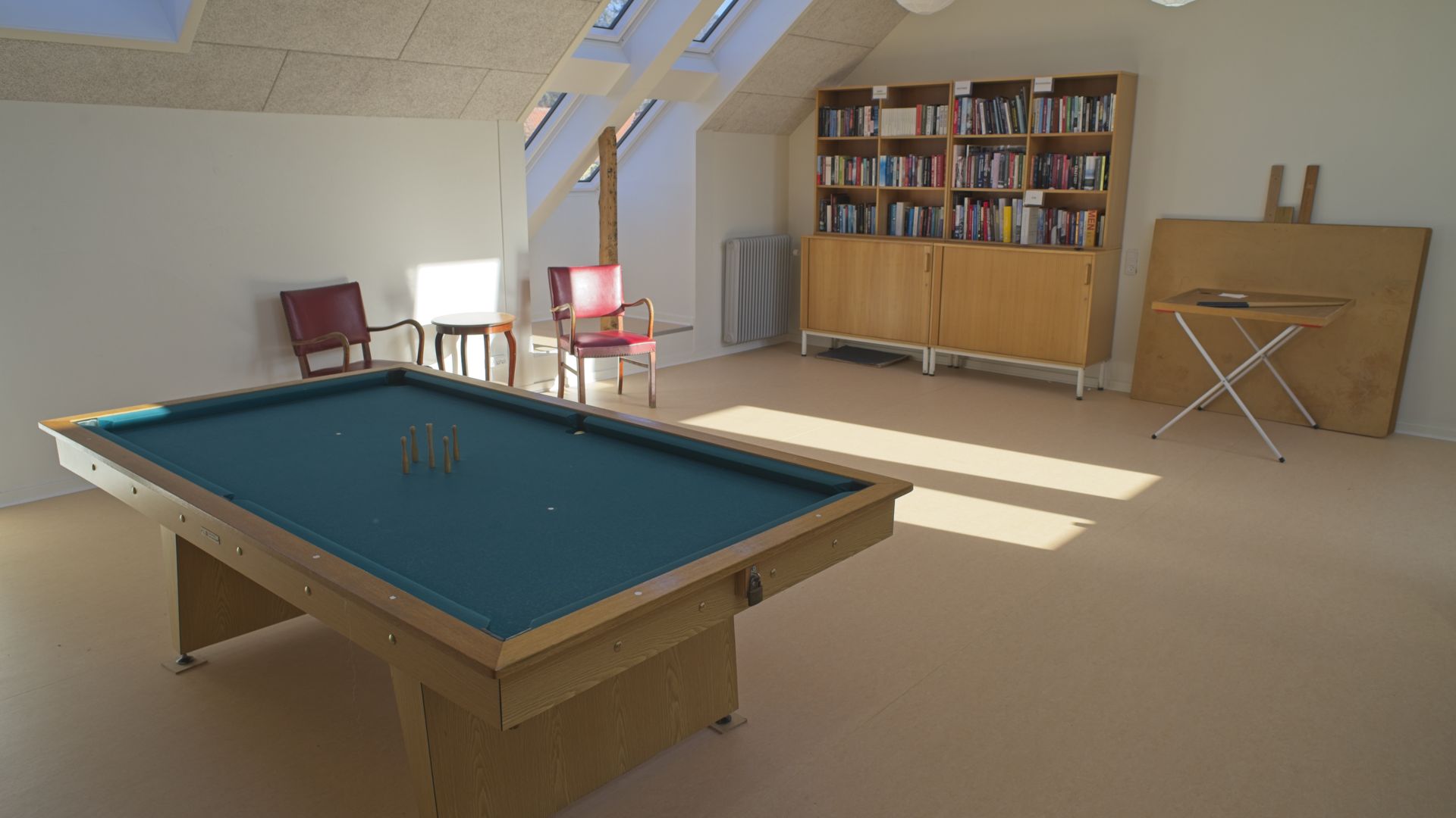 På 1. salen har vi yderligere tre lokaler. Det ene fungerer som Kreacafé og mødelokale, det andet er et hyggerum med billiard,