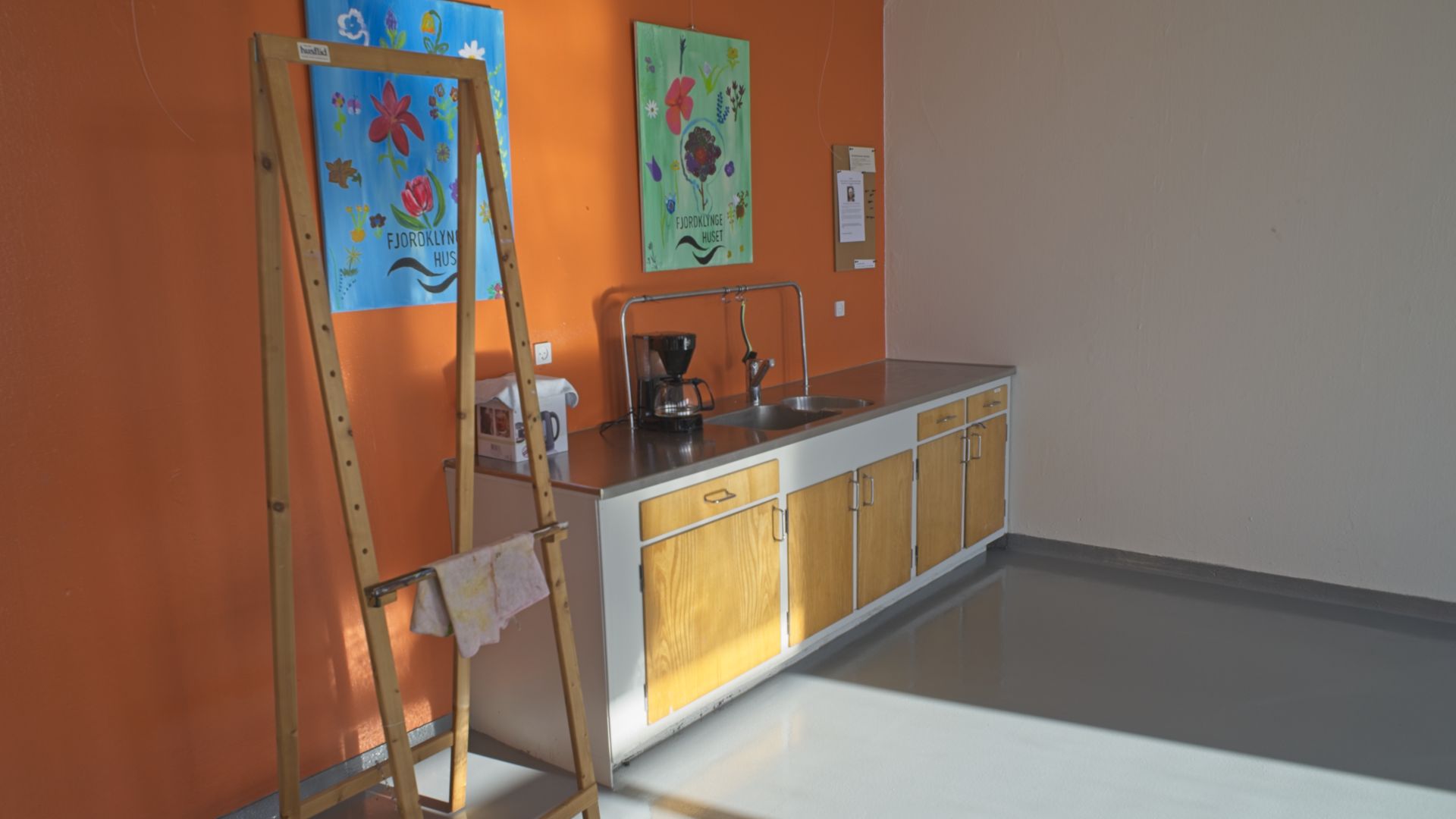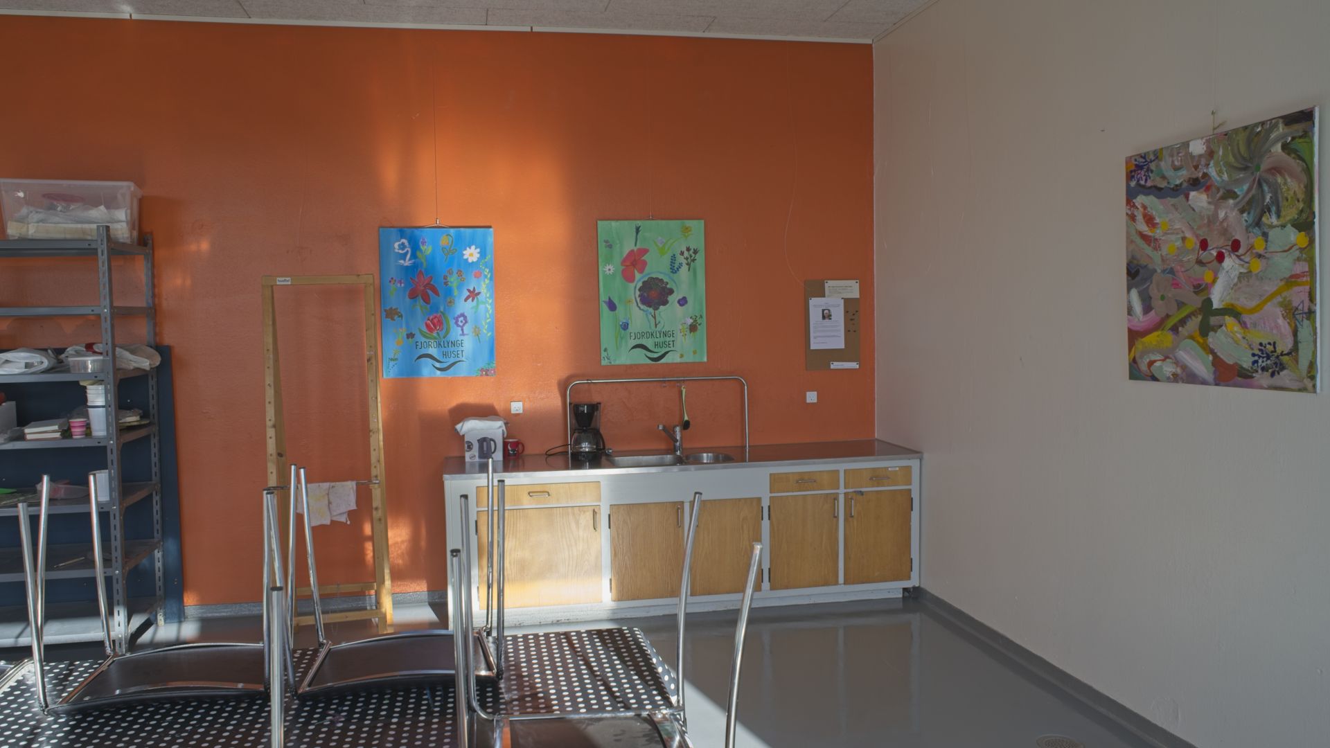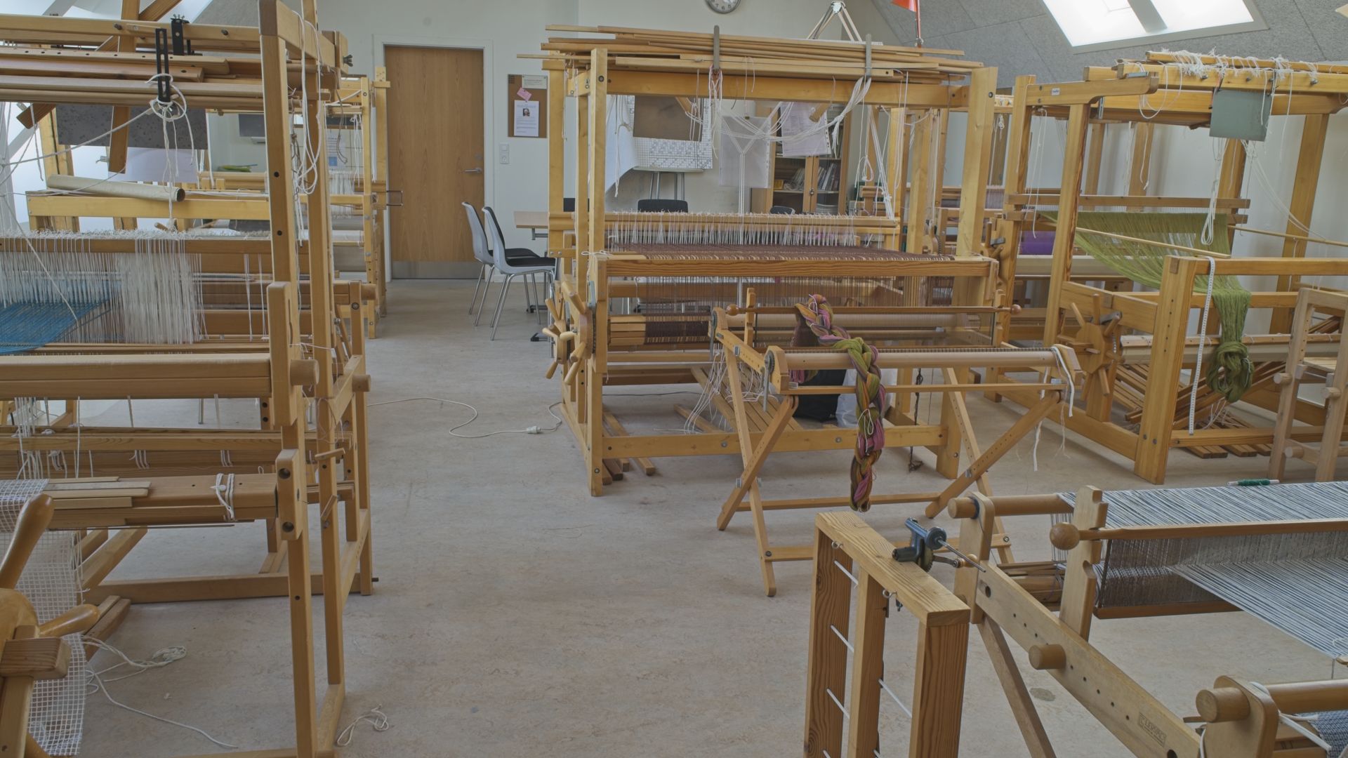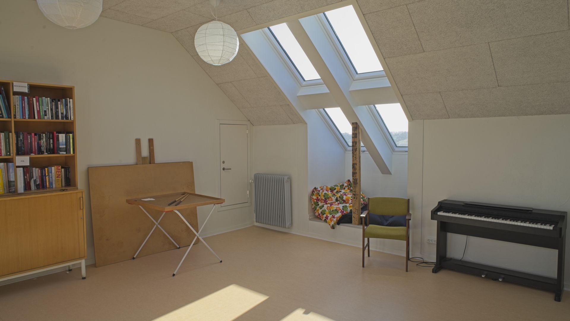 bibliotek og hyggekroge. Tredje lokale er forbeholdt husets vævehold, men kan også bruges til små møder,
