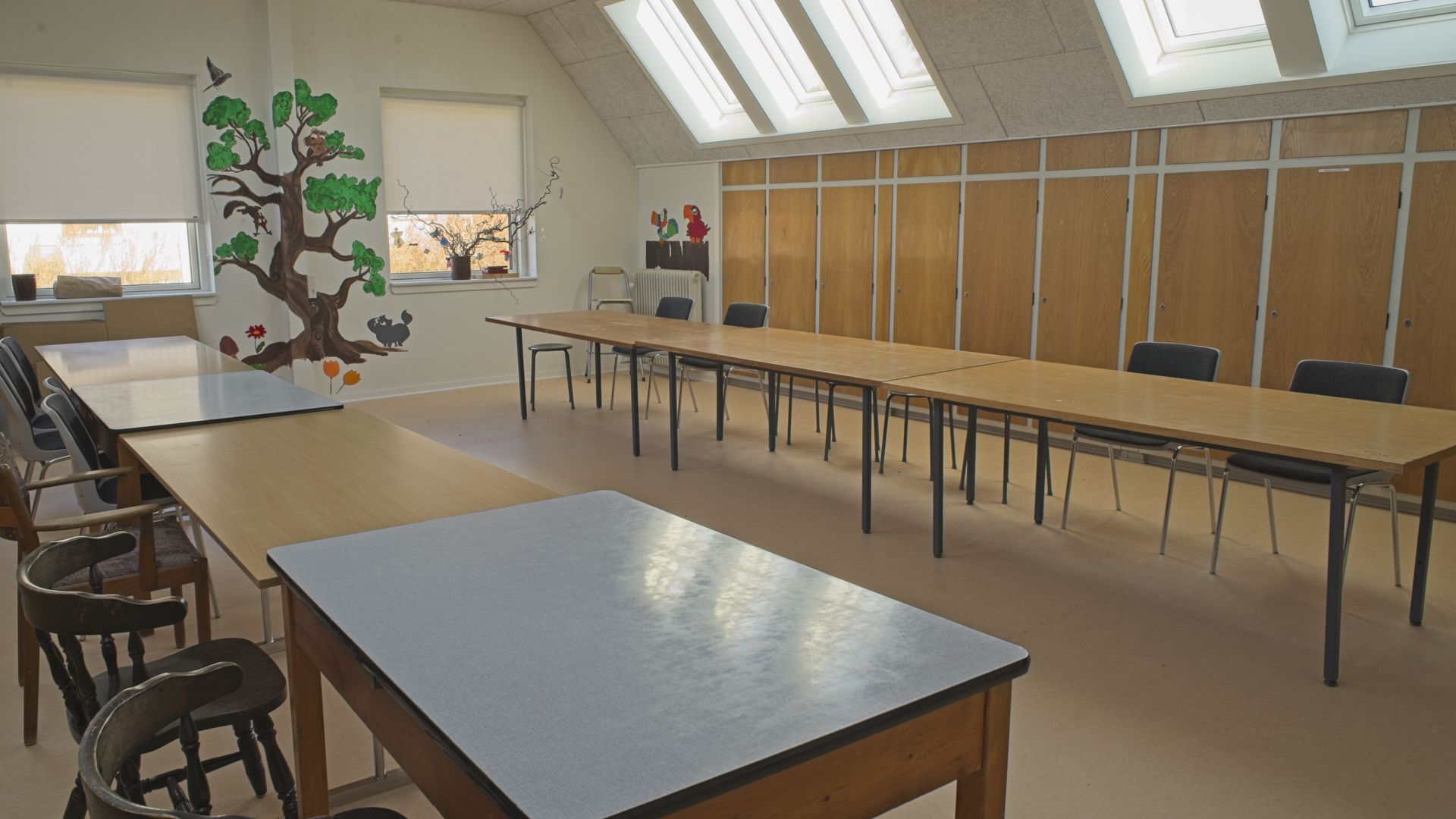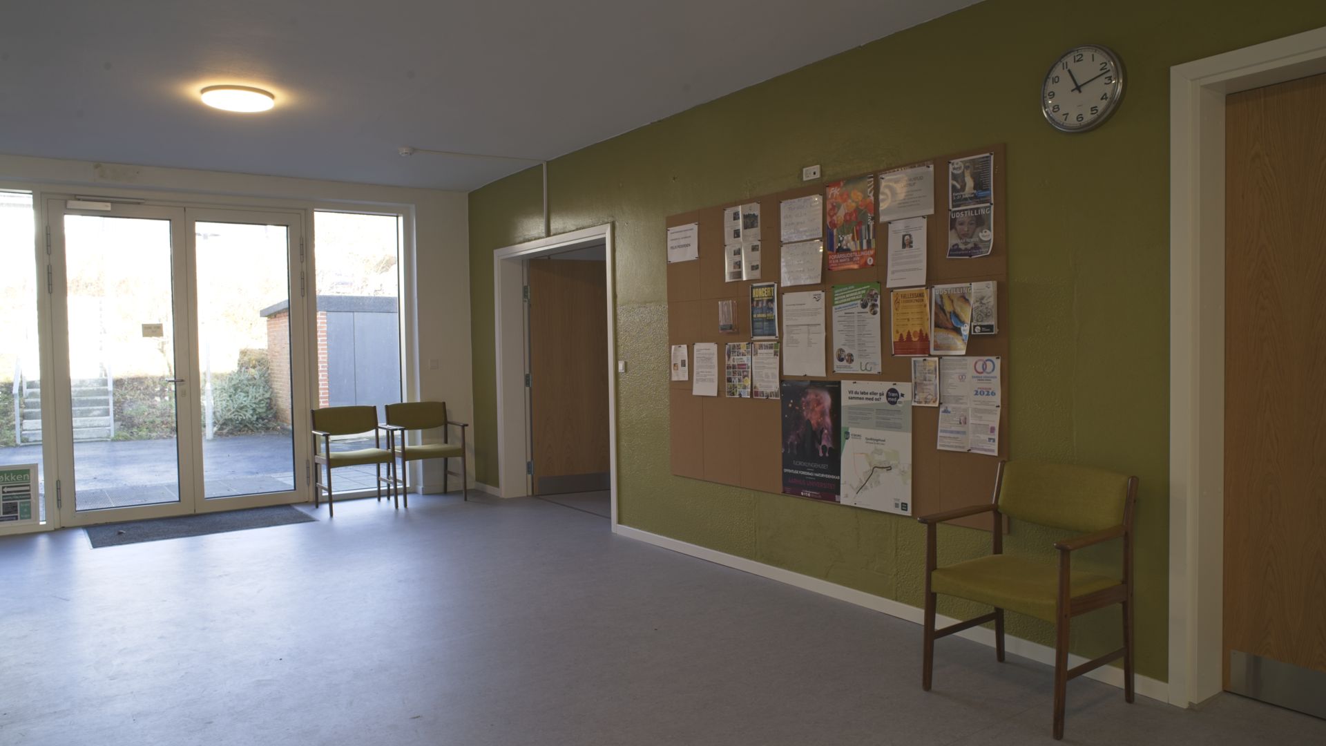 På den gamle klassegang finder du 3 lokaler, 1, 2 og 3. Lokale 3 ligger tættest på hovedindgangen med den automatiske dør.